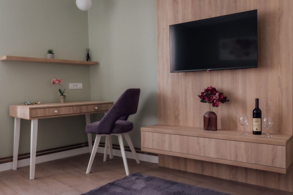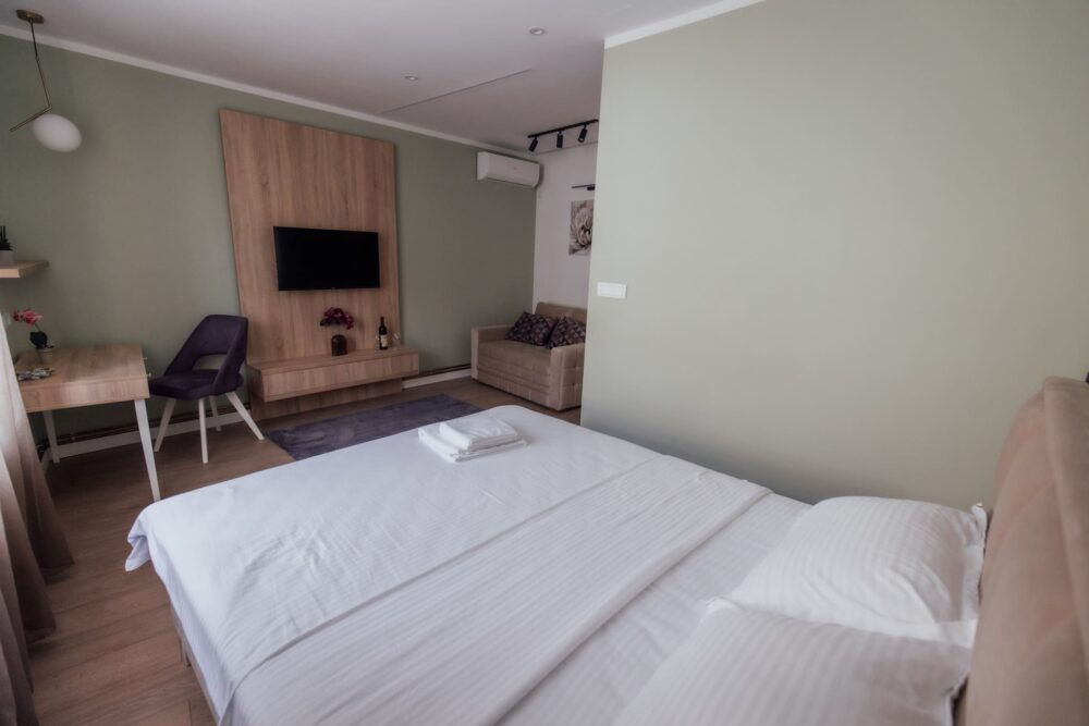 Nudimo vam moderan,luksuzan i udoban smeštaj. Stan je opremljen klimom, Wi-Fi, Smart TV-om, sofom na razvlačenje, parking mestom . Prostor ima 45 m2, podeljen na kuhinju, kupatilo i spavaću sobu.